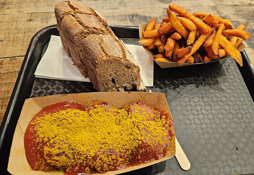 Aiiiiieeee, I guess they actually DO have the spiciest curry wurst (in vegan!!) that ever existed. I am a regular spicy eater (in the meaning I season every single food with carolina reaper and co. to be able to enjoy it and eat it) so I thought I am capable of level 8, so I went all in (thanks for warning me and of course you have to be over 18 and sign something to take full responsibility! Good service honestly). AND LET ME TELL YOU, oh my God, it was AMAZING. Painful, BUT AMAZING. Okay I ate two pieces and called it a day because it started to burn, REAL burn. I'm disappointed with myself, but also proud! Is it worth it? Oh yes totally if you're like me and love spicy!! Long story short, I loved the experience, I appreciate a lot the fact that they offer it in vegan because most spicy challenges in other restaurants is just with meat! Really nice people working there. Oh of course it was actually yummy! Even the bread which is just on the side was super yummy and warm! 100% worth...