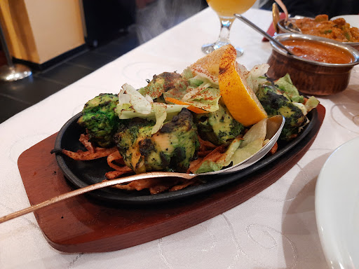 We ordered garlic naan, two main dishes, and dessert. The naan arrived and had just barely enough garlic on it for me to recognize it was supposed to be garlic naan. Sad, but I can let it go; even regular naan is tasty. The main dishes were what got to me. They was no hint of spice which is annoying but tolerable (maybe trying to cater to european people? I don't know?), but unforgivably there was no recognizable seasoning. It was basically like eating a bean-based mush with rice. No flavor to speak of. The other dish was one of the grilled dishes with chicken. The chicken itself was not perceptibly seasoned, and while it wasn't the absolute worst quality chicken I had, it was dubious enough that I was noticing and thinking about the quality of the meat while eating (not great). Sauce was on the side; about half as much sauce was provided as would go with that amount of chicken, and like everything else, it didn't really taste like anything. We did get a dessert, which was nice, and in line with my expectations for that dessert. Finally, it also took a considerable amount of time to flag someone down so that we could pay. On that note, the prices would be slightly high for this amount of food if the food was great, but the prices are WAY too high for what the food is. The chicken dish was 18 euros! I would only eat it again if it were free and I was so hungry that I didn't care if the food tasted like anything.