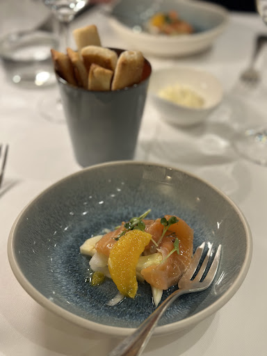 This is Part of the Serie Stuttgart fine dining. The Place is in a quiet residential area next to a small park. The atmosphere is nice and cozy inside. We choose the menu „amore. The first amuse bouche is a vegetable small lasagna: unfortunately i had to season it a bit. The antipasto was scallops in a peach sauce: this was definitely not my taste: I did not like the combination of the sweetness with the scallops. The ravioli were also not my cup of tea: for me the fish was not harmonious with the red sauce of the ravioli. The main course was a sea bass, this was fantastic, tender , perfectly cooked and served with roasted vegetables. The dessert was a bit of a disappointment, I did not like the combination of the panna cotta and sorbet. In all, I don’t agree with previous statements that here you get modern Italian cuisine: here you get an Italian cuisine adjusted to the surrounding. We paid 250€ for 2 people, too expensive for the food and the portions served. I personally would...