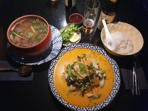 Atmosphere and interior was nice but the service probably understaffed because the service personnel was really unfriendly. Came to take our order by just staring at us, no greetings for meeting the first time. The food was ok but for the price point, i felt it was not worth it. Ordered the beef pho and the soup tasted like the instant cubes used to make the pho soup, two stalks of herbs, 3 slices of chilli. the beef amount was good but the beef used was very dry and hard to chew. All for a whooping 18.90 €. I honestly cannot recommend this restaurant for the food and service. but the location and...