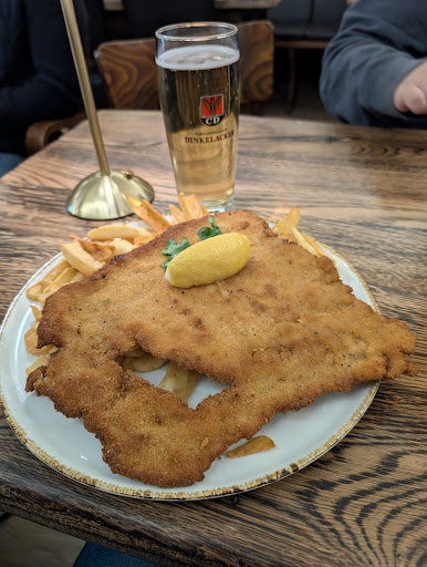We came here for dinner on a Friday evening and were lucky to get seats without a reservation. The waitress was very kind and polite. Schnitzels start at around 17,90€ and mostly stay under 20€, depending on the sauce and side dish. I ordered the Wiener Schnitzel XL and was pleasantly surprised by the portion — it was huge and delicious! It came with hot and crispy fries. Everyone in our group enjoyed their meal. Toilets are available for customers. We’ll...