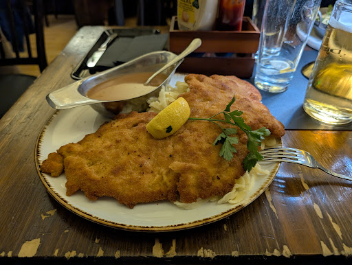 We came here for dinner on a Friday evening and were lucky to get seats without a reservation. The waitress was very kind and polite. Schnitzels start at around 17,90€ and mostly stay under 20€, depending on the sauce and side dish. I ordered the Wiener Schnitzel XL and was pleasantly surprised by the portion — it was huge and delicious! It came with hot and crispy fries. Everyone in our group enjoyed their meal. Toilets are available for customers. We’ll...
