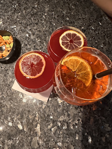 The staff at the bar were professional and accommodating, demonstrating their knowledge in mixology and cocktail making. However, the Cosmopolitan cocktail we tried didn't quite meet our expectations. While beautifully presented, the taste didn't hit the mark for us.