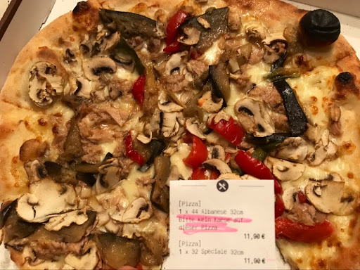 Kann die positiven Bewertungen nicht verstehen. Erst kostet die Pizza mehr als es auf der eigenen Website steht... Wenn man darauf hinweist wird nur rumgedruckst und trotzdem der volle Preis verlangt, obwohl es doch den ihr Fehler ist. Und dann ist die Pizza völlig versalzen! Ja versalzen! Ich bin seit bestimmt 25 Jahren leidenschaftlicher Pizza Esser und probiere in jeder Stadt verschiedene Pizzarien. Soetwas habe ich aber noch nicht erlebt. War ungenießbar, nach dem 2. Stück habe ich sie weggeworfen. Nie wieder!