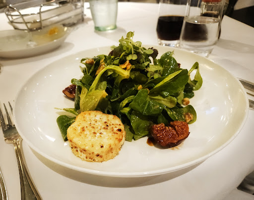 We had a wonderful experience at Bistro Rüechlin in Stuttgart. I started with the Lamb’s Lettuce Salad with seared goat cheese, fig, and pear, and it was everything I love in a salad. My husband chose the beef bouillon soup and really enjoyed its rich, salty depth.