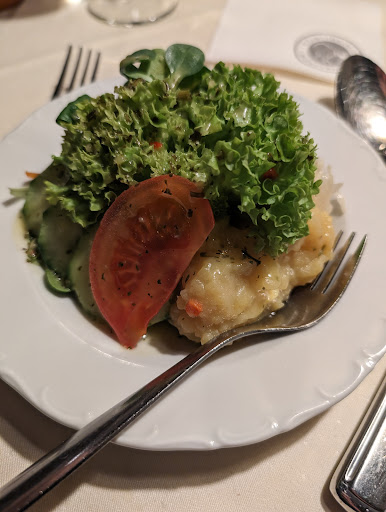 Nice place. Chill atmosphere. Good food. We got even chefs compliments - potate with chicken, in general it was tasty, but potatoes are everywhere, seemed a bit too much. We took duck with sides. It was a huge portion so be careful. Not all of us ate everything. Salds came quite the time beforymain dish so we didn't understand how much to eat out of that so that we could finish all main course. Duck was tasty, well cooked, sides were tasty. Although I remember that potates were made as dumplings balls. In my opinion tasty, but that definitely is not for everyone. Other guy took stake which was juicy, seemed like medium cooked. Came with fried potatoes and extra gravy. He described it as really tasty dish. We didn't jmhave room for dessert so we just ate and left. This place seems is popular with locals because we saw quite a lot of local pensioners (mostly single). But also an Asian delegation came in shortly...