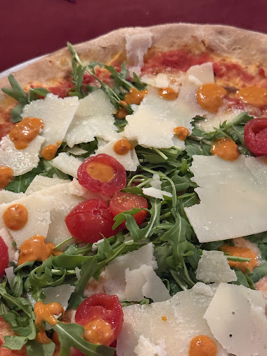 Read moreEssen: Ich habe die Pizza Rucola, Pomodorini e Parmigiano bestellt â mit Kirschtomaten, Rucola und Mozzarella. Die Pizza kam aus dem Steinofen, was grundsĂ€tzlich ein Pluspunkt ist. Der Teig war gut gebacken, auĂen knusprig, innen luftig. Geschmacklich war sie allerdings eher zurĂŒckhaltend â etwas mehr WĂŒrze oder Frische hĂ€tte der Kombination gutgetan. Leider war die Pizza beim Servieren bereits etwas zu kalt, und der Rucola wirkte leicht welk, als hĂ€tte er schon lĂ€nger auf der Pizza gelegen. FĂŒr 14âŻâŹ hĂ€tte ich mir geschmacklich und von der Frische etwas mehr erwartet. Die PortionsgröĂe war in Ordnung, aber nichts AuĂergewöhnliches. Getrunken habe ich eine Johannisbeerschorle â schön gekĂŒhlt, angenehm im Geschmack.