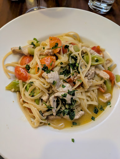 Honestly, this place really isn't THAT bad, it's just not that great. The food is mainly mediocre at best, but the service is quite good. I had the tomato soup, which was bland, and the linguine with veal, that was just ok. The white wine sauce in the pasta was fine, but the veal was mostly lacking flavor, and the rest of the ingredients weren't anything to write home about. I did appreciate that the pasta came out steaming hot, but other than that, it was just ok. The tiramisu was very sponge-like and didn't have much flavor either. The restaurant is quite loud, and all the tables around me were visibly extremely drunk and loud, which I don't have a huge issue with, it's just that the food didn't make up for it. I'm not necessarily opposed to coming back here, because the service was good and the restaurant itself is very clean, but I won't go out of my way to come back. I could see this as a good place to come with a big party where the experience isn't so much about the food, and more so about having fun with...