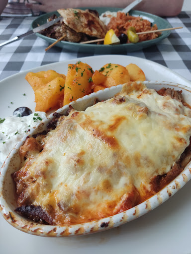 Read moreDas Essen ist in Ordnung. Tzaziki leider recht wenig (aber lecker) und nachbestellen kostet dann erstmal circa 5 Euro. Gyros in Metaxa Soße und die Fleischplatte waren okay, durchschnittlich, sowohl von Geschmack als auch Qualität. Eine sehr dicke Käsescheibenschicht oben drauf auf dem Gyros. Schade, dass bei Wechsel der gleich teuren Beilagen ein Aufpreis verlangt wird. Die griechischen Kartoffeln fand ich aber nicht schlecht. Manche Gerichte kann man als kleine Portion bestellen, den Gyros aber leider nicht.
