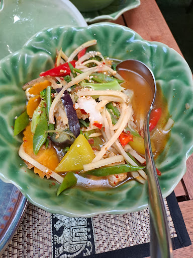 Read moreWe went here at around 8pm for dinner on a summer evening without any reservation. The outdoor seating was almost full but the restaurant staff was kind enough to find a place for 2 of us within a short span of time. They have a very good collection of menu from the Thai cuisine. I opted for H209 Gäng Pha Pag from the vegetarian menu, it was like a mixture of all vegetables in a curry served with Jasmin Rice. My friend had opted for H67 Bedd Pad Khing from the duck menu. This looked like a curry mixed with pieces of duck, mushrooms and other vegetables served with Jasmin Rice. We had requested for "Sehr scharf ". It was indeed very spicy, so I will request you to not opt for this level, instead take scharf or mittle scharf if you want to eat spicy food. The waiters were very kind and generous, it's a good atmosphere to spend a nice and relaxed evening in the outdoor. They also have indoor...