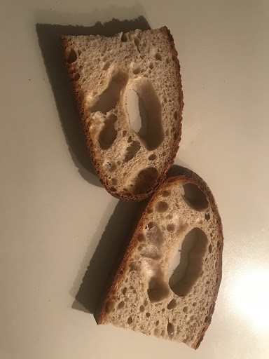Read moreFür die Verkäuferinnen gebe ich 5Sterne. Man muss auch bedenken das diese Filiale sich zwischen dem Bahnhof und dem Industriegebiet befindet und was weiß ich wieviele Besucher am Tag hat. Ich wurde immer freundlich bedient!! Solange das Personal mit Schutzhandschuhe meine Backwaren anfasst ist alles in Ordnung. Die 2 Sterne gebe ich allgemein für die Bäckerei Treiber , da die Qualität nicht immer stimmt. Wie man auf dem Foto sieht hat mein Bauernleib sehr große Löcher drin. Und das ist nicht nur einmal passiert, auch das genetzte Brot welches ich früher kaufte hatte des öfteren Löcher drin. Wie soll ich da Nutella draufschmieren???? Dann ist ja die Hälfte auf dem Tisch??? Ich habe das auch schon in der Filiale direkt angesprochen und als Antwort bekommen „wir werden es der Backstube melden“ . Auch werden auf den Pfefferbrezeln immer weniger Salz und Pfeffer gestreut...