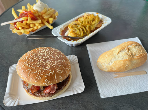 Read moreEin ganz normaler, solider Imbiss. Es gibt Burger, Würstchen und Pommes. Schmeckt alles in Ordnung, aber auch nicht außergewöhnlich. Der Wagen sieht sehr zweckmäßig und schmucklos aus, der Herr am Grill ist eher zackig als besonders freundlich. Getränke holt man sich selbst. Leider keine einzige wirkliche Mahlzeit für Vegetarier. Außerdem sollte man den Imbiss nicht mit Udo's Snack in der Stadt verwechseln, der spielt in einer...