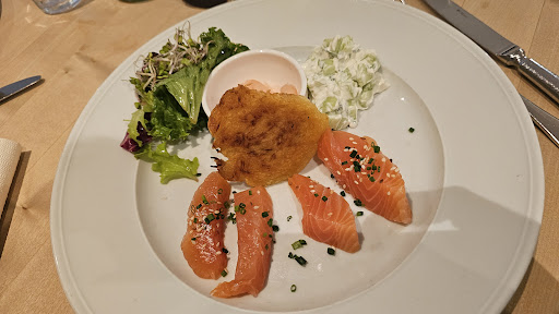Read moreEs ist wirklich schade, dass ich mich darauf gefreut hatte, dieses Restaurant auszuprobieren. Als ich ankam, wurde ich nicht begrüßt und niemand hat mich zu meinem Tisch begleitet. Die Speisekarte war handschriftlich und schwer lesbar, was viel Energie kostete, um sie zu entziffern. Als Vorspeise hatte ich Vollkornbrot mit Garnelen und Spiegelei bestellt. Leider war das Eiweiß des Spiegeleis nicht ganz durchgekocht und die Garnelen schmeckten stark nach dem Meerrettich , waren aber auch sehr kalt deswegen Ei war schon kalt als das angekommen war ob ich das nochmal bestellen will? Definitiv nicht . Mein Hauptgericht, das Schweinekotelett mit Gemüse und Kartoffeln, hatte perfekte Kartoffeln, aber das Gemüse bestand nur aus einem Stück Blumenkohl, Brokkoli und zwei kleinen Möhren. Das Fleisch war gut gebraten, aber die Sauce war ziemlich neutral und insgesamt nur okay. Mein Getränk, der Hugo, war mit zu vielen Zitronen zubereitet, sodass es nur nach Zitrone schmeckte. Der Service war in Ordnung, aber ich musste sieben Minuten warten, bis meine Teller abgeräumt wurden, obwohl sie gesehen hatte, dass wir fertig waren. Für ein Zwei-Gänge-Menü mit einem Hugo und Wasser für 100 Euro stimmt das Preis-Leistungs-Verhältnis definitiv nicht, besonders für ein Restaurant, das sich als Alltagsrestaurant präsentiert. Ich bin leider enttäuscht und denke, dass dieses Restaurant...