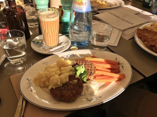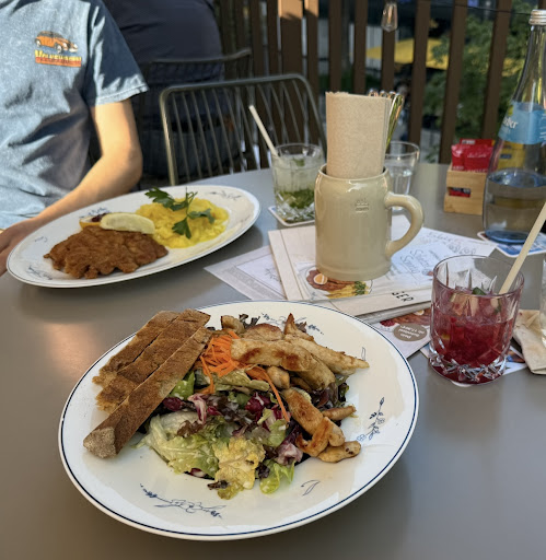 Classy but laid-back place for German food. Good choices for vegetarians and vegans in addition to the whole selection of meat dishes. We arrived as a party of 10 and they pushed together some tables on the second level patio to accommodate us. Service was polite and the food came out very quickly considering what a large group we were. The menu items came with English descriptions and the staff all spoke English. I had the Dinkelbratlinge, a vegetarian dish of veggie patties with potato salad, cooked carrots, and sour cream. The patties were tasty and had a nice texture. The potato salad looked plain but the dressing was nice and tangy, and not too heavy. All very satisfying. I also had a delightful Vanilla Iced Coffee. My total for the above plus a large mineral water, including 10% gratuity, was about $31,50. This would be on the expensive side back home but I’m not used to prices here yet so I won’t comment. I will say it was good quality food and quite filling, plus nice atmosphere, which are the things that justify a higher...