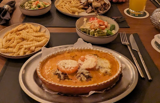 Read moreLeider kann man hier nur schlecht bewerten und das liegt nicht unbedingt essen. Wir waren die ersten im Restaurant gewesen und haben auf unser Essen schon über eine Stunde gewartet. Aber da wir ja zum Glück die ersten waren war das noch zügig. Da viele vor Ort waren die wir kannten erzählte man uns am anderen Tag das man fast 4h gewartet hat. Immerhin lief das Liefergeschäft gut und die Mahlzeiten dafür wurden bereit gestellt. Unsere Getränke konnten wir nur per Zufall und Glück auffüllen lassen, wenn man einen Kellner gesehen hat, der auch nur schwer zu erwischen war. Das Restaurant war richtig voll gewesen und stellenweise kamen Gäste und gingen auch wieder ohne das sie auch nur die Karte in der Hand hatten. Wir hätten gerne noch einen Nachtisch gehabt doch trotz zweimaligen Hinweisen, dass wird gerne noch Nachtisch bestellen würden, kam keiner und nahm die Bestellung an. Es gab leider auch keine Entschädigung aus der Küche oder der Bar das man so lange warten musste. Wir waren um 17:30 da und sind um ca. 20 Uhr dann gegangen. Sehr schade naja nächstes Jahr werden wir nicht...