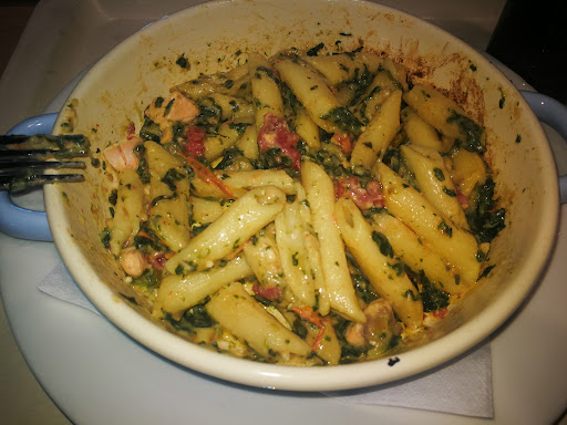 Meine Frau hatte die Pasta mit Fisch (Penne mit Spinat, Lachs, Cocktailtomaten und Sauce). Ich hatte den Klassiker Scholle, dazu Kartoffelsalat und ein Bierchen (alkoholfrei, da Mittags). Das Essen meiner besseren Hälfte wurde gebracht, während ich bereits anfing, damit die Scholle nicht kalt wird. Ich esse eher schnell, während meine Frau eher langsam isst - trotzdem war meine Frau deutlich vor mir fertig, weil es so wenig war. Erst dachten wir, der Anblick täuscht, aber er tat es nicht. Es war wirklich wenig - und in der kleinen Portion war auch Lachs nur in homöopathischen Dosen vorhanden. Fast 10€ dafür - sorry, Nordsee: so geht das nicht. Da bleiben nur 2 Sterne für die netten...