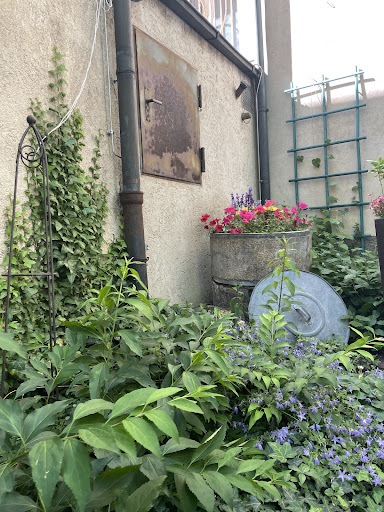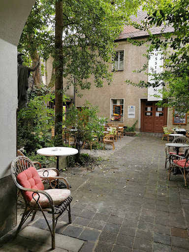 An sonnigeren Tagen bietet der Cafégarten im Hinterhof denen, die ein bisschen Schatten und Ruhe mitten in der Stadt suchen und die Hektik des Alltags für eine kurze Zeit hinter sich lassen möchten, eine angenehme Atmosphäre und ein tolles Ambiente. Radtouristen können dort auch ihre Fahrräder mitnehmen und im Auge behalten.