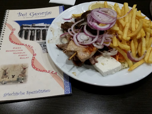 Wir sind relativ schnell, auch durch Tips der Nachbarn, auf die griechische Taverne „Bei George“ gestoßen. Als wir im Umzugsstress mal nicht kochen wollten, haben wir abends eine Pizza bestellt. Eine Pizza beim Griechen? Geht das? Ja, das geht! Es war so ziemlich die beste gelieferte Pizza, die wir jemals hatten. Sie war noch heiß, der Rand war flauschig und der Belag reichlich. Klar hat jeder eine andere Vorstellung einer Pizza. Für uns war sie perfekt.