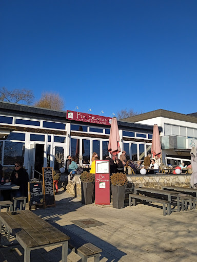 Von außen betrachtet ist es ein schönes Restaurant mit Potenzial. Wenn man dann allerdings den Rest betrachtet, nützt die schöne Lage und das zuerst freundlich wirkende Personal leider auch nichts mehr. Nachdem die Getränke relativ schnell an den Tisch gebracht wurden und die Essens-Bestellung aufgegeben wurde dauerte es auch nicht besonders lange bis das Essen kam. Allerdings nur ein Gericht. Auf das andere Gericht musste man leider viel länger warten, was sich meiner Meinung nach nicht für einen Gastro-Betrieb gehört. Dies beobachteten wir ebenfalls bei anderen Gästen. Bei größeren Gruppen waren einige bereits fast fertig mit dem essen, während bei anderen das Essen noch nicht mal da war. Als das zweite Essen dann endlich mal kam, fehlte die dazu bestellte Mayonnaise. Bis diese dann an den Tisch gebracht wurden, dauerte es auch nochmal seine Zeit. Das Gyros Spezial war von der Idee her eine schöne Sache, jedoch hätte man mehr daraus machen können. Die Gyros-Stücke bestanden im größten Teil aus Fett und das ganze schwamm in einer Art Käse-Sahne Sauce mit Dosen-Champignions und Zwiebeln. Auch bei anderen Gästen blieb das Gyros auf dem Teller liegen. Das Putensteak mit Pommes war gut und der Tzatziki auch. Dafür gibt's auch die 2 Sterne. Der Preis dafür war ebenfalls in Ordnung. Allerdings fehlte bei beiden Gerichten der Salat! Da nicht bei allen Gerichten ein Salat dabei war, fiel uns dies allerdings erst auf als wir die Quittung erhalten haben und darauf ein Salat ausgeschrieben war. Nachdem wir das angesprochen haben, haben wir jeweils 2€ erstattet bekommen, entschuldigt wurde sich dafür allerdings nicht. Wir wurden weder vor oder nach dem Essen gefragt, ob alles in Ordnung sei. Die Servicekraft welche uns bedient hat wirkte generell eher genervt. Da das Restaurant nicht einmal voll ausgelastet war zu dem Zeitpunkt, kann ich mir nicht vorstellen wie es laufen soll wenn alle Plätze belegt sind.