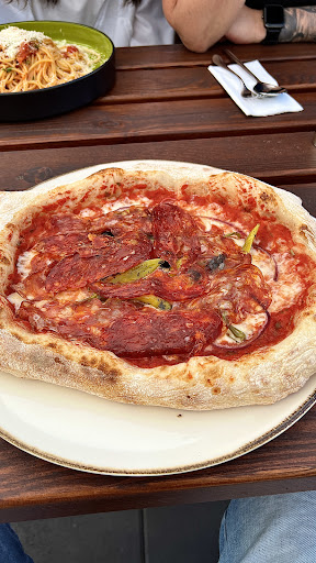 Die Neapolitanisch angelehnte Zubereitung mit dem dickeren, knusprigen Rand verlieh der Pizza einen rustikalen Charme. Insgesamt war diese Pizza Diavolo ein kulinarisches Highlight, das die Liebe zur italienischen Küche und die Sorgfalt bei der Zubereitung deutlich zeigte. Ein absolutes Muss für Liebhaber authentischer italienischer Pizza! Wir würden extra nochmal die 30km Anfahrt auf uns nehmen um...