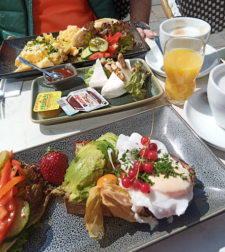 Read moreEin wirklich sehr schönes Café.Wir haben diese Woche 3x dort gefrühstückt.Das Frühstück ist wirklich sehr lecker und schön angerichtet,jedoch immer etwas unterschiedlich (Portion der Rühreier variiert,mal gibt es 6 Scheiben Käse,mal nur 3 Scheiben)mal mit mal ohne Butter/ Cappuccino mal mit mal ohne Keks ... Einmal würde die Frühstücksbestellung komplett vergessen,dann falsch gebracht.Unser Kaffee war dann natürlich schon ausgetrunken...den hätten wir natürlich gerne zum Frühstück dazu gehabt.Wenn die weibliche sehr nette Bedienung da ist...klappt alles reibungslos.Ansonsten ging der Kellner 4x an uns vorbei ohne Notiz von uns zu nehmen.. obwohl viele Tische frei waren.Wir sind dann irgendwann aufgestanden und haben woanders gefrühstückt ...schade....ein wirklich schönes Café aber an diesem täglich unterschiedlichen Service muss sich wirklich etwas ändern. Wir waren im Februar und im März 23 schon da und auch da war es so unterschiedlich.... Da hilft auch das leckere Essen nicht, um sich als Gast...