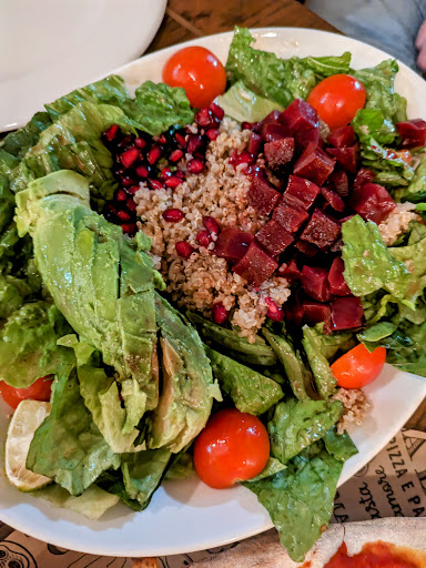 We ordered a salad, pasta, 2 pizzas. One of which is a half-and-half pizza with two different toppings, and I was impressed with the quality of the ingredients and the flavor of the pizza. The crust was thin and crispy, and the toppings were fresh and flavorful.