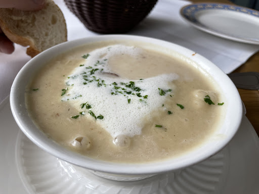 Selbstgemachter Kuchen (großes Angebot) läd Nachmittags ebenso zum Verweilen wie die Karte mit Fisch-und Fleischgerichten. Achtung: neue Öffnungszeiten. Bis 17 Uhr kann Essen bestellt werden, am Abend hat das Restaurant nicht mehr offen. Das Essen ist klassisch und lecker. Die Bedienung freundlich und die Toiletten sauber.