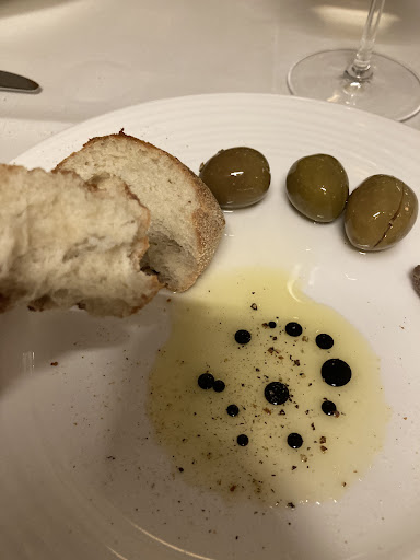 Wir wurden platziert und nach einiger Zeit gab es hektisch die Speisekarte. Auf den Nachbartischen standen jeweils ein paar Oliven welche wir auf Nachfrage bekamen.