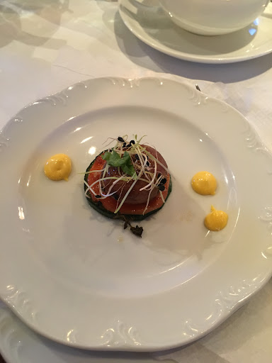 Read moreDas Restaurant hat zwei Hauptessenszeiten, 18 bis 20 und 20 bis 22 Uhr. Grundsätzlich nicht so schön, aber wir haben uns für die erste Zeit entschieden, allerdings waren wir schon 17.30 vor Ort. Kein Problem, freundlicher Empfang. Vorweg gesagt, wir konnten auch länger verweilen, da wohl nicht alle Tische um 20 Uhr besetzt wurden. Die Karte ist schnell gelesen, klein aber fein. Wir entschieden uns für Austern eine geteilte Vorspeise, zum Start völlig ausreichend und sehr lecker. Dazu einen Silvaner von Wirsching. Als weiteren Gang, ebenfalls geteilt, ein Tatar. Sehr gutes Fleisch geschnitten, so dass das Fleisch noch zu beissen war. Danach dann das Hauptgericht und zwar zweierlei vom Lamm (Wurst und Filet) und ein Fischgericht (Seeteufel mit Hummersud). Zum Lamm gab es dann noch einen Spätburgunder. Beide Gerichte sehr schön anzusehen, heiß und schmackhaft. Der Hummersud intensiv und der Lammgeschmack präsent aber nicht aufdringlich. Zum Desert dann noch eine Kugel Passionsfrucht und zu allerletzt dann einen Espresso. Insgesamt haben wir uns drei Stunden im Restaurant aufgehalten und das Ganze für 185 EUR. Ein gelungener Abend den wir in Hamburg kaum besser und nicht zu diesem Preis genießen konnten. Das Restaurant ist gemütlich eingerichtet und hat noch ausgebildetes und nettes Personal. Was will man mehr? Wir...