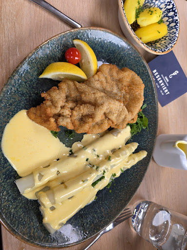 Essen war fein: Ziegenkäse und Ceviche als Vorspeisen - Moule frites und Labskaus als Hauptgang. Alles geschmacklich wunderbar, die Ceviche mit Dorsch mal ganz anders, aber frisch und zitrig, perfekt für den ersten Sonnentag! Labskaus auch als Vorspeisenportion perfekt für normalen Hunger, andere Gerichte gibt es auch als "halbe Portion". Gute Idee! Außerdem den sehr guten Salat probiert, für Kinder gibt es zum Beispiel eine faire Portion Fischstäbchen. Dazu gab es den guten Grauburgunder als Hauswein für angemessene 38 Euro.