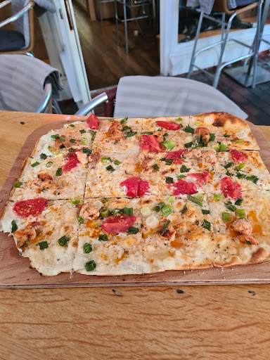 Read moreWer hat von meinem Flammkuchen gegessen? Ist doch gerade erst gekommen😂😂😂. Also manchmal wird mir die Sparsamkeit zuviel. Die daumennagelgroßen Dinger sollen Garnelen sein! So treibt man Stammgäste weg. Jedesmal Trinkgeld und dann so eine Nummer. Geht gar nicht. SCHADE! Lieber Olaf! Den Morgengruß erwidern geht aber noch, oder? Gesprächsbedarf? Die Begleitumstände zu schildern, habe ich mir wohlweislich verkniffen. Fazit: Der Stammgast zahlt immer den verlangten Preis, verliert aber mit der Zeit seinen Wert. Der Preis steigt mit der Zeit, wenn's dann "kaputt' gespart wird, ist's am Ende noch viel weniger Wert und erst einmal den Besuch nicht mehr wert. Wertschätzung hat schließlich auch einen Wert!