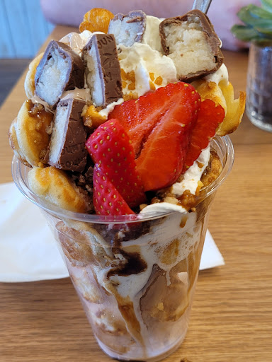 Read moreSehr leckere Bubblewaffel mit Softeis, Sahne, frischen Erdbeeren und Bounty. Sehr zu empfehlen. Die Bedienung hatte nach unserer Meinung 8 Arme. Bedient den Außenschalter mit viel Kundschaft und gleichzeitig die Gäste im Laden und bleibt...