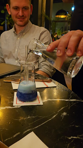 In Germany on a business trip with colleagues from the US. At the Gasthaus Bären we requested restaurants recommendations in the Tubingen area. The service staff suggested we give 1821 a try. After realizing we should check to see if reservations are required, we made a reservation on the website for 6 at 8:15pm. We were sat promptly upon arrival, and the service staff offered us a choice of 2 tables. The restaurant was relatively booked, but the section they put us in only had 1 table occupied so we were able to enjoy our evening and have great conversations. We translated the menu on the website to English, and made selections of cocktails and beer, the Burrata and Beef Tartare appetizer, and selected a range of dinner entrees, the truffle spatzle weiner schnitzel, one day in Bangkok, and rounded out the meal with the Botanical Garden and the highly coveted and suggested Apple Dessert. From the pouring of the Alchemist drink, prompt delivery and presentation of food, fresh ingredients, to the sweet endcap we enjoyed our evening, spending 2 hours relaxing. The staff boxed up our meal, gave us business cards to share the word, and offered us complimentary sweets for the road. We met the amazing chef Sander and Alean both took car of us, with a few others along the way. The promptly cleared each round of plates and cups, make great recommendations for us to try. Made us foreigners feel welcome and relaxed. The ambiance is a vibe, the lighting was relaxing, music was on but not distracting. It looked like there were private areas, and we were bummed that we didn't get a chance to check out the outdoor space. We will be telling our supplier to bring their future customers here for Business Dinners or Specialty occasions. Definitely a MUST visit place if you're in the area. It was only an 8 minute walk from our Hotel. Open surprisingly late in relation to the other restaurants...