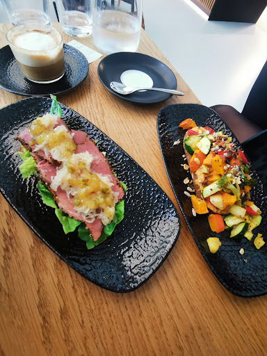 Die Ausstattungen des Cafés wirkt sehr modern. Obwohl es heute augrund des Ansturms etwas chaotisch zuging, wurde wir zeitnah bedient. Auch die "Extrawünsche" (Stulle ohne Salat) wurden berücksichtigt und die Getränke und Gerichte kamen wie bestellt. Es hat natürlich etwas länger gedauert, aber das ist bei einer Neueröffnung und bei dem Ansturm aus meiner Sicht akzeptabel. Andere Gäste waren leider nicht so nachsichtig.
