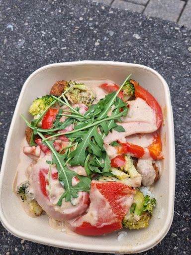 This place serves food bowls, which you can customize depending on your preferences. There are vegetarian options available. The staff is very young but seems capable. The broccoli is mostly not cooked long enough. They also sell very nice bottled ice teas, which are regionaly sourced.
