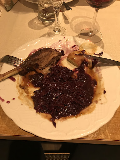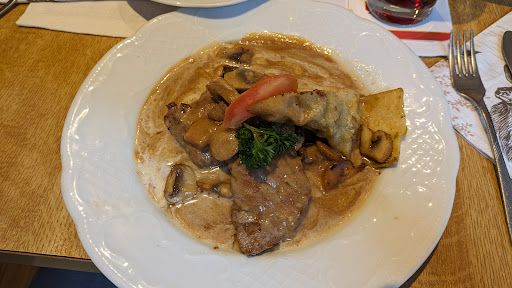 Eat in a rush? This is not a place for you. The atmosphere, service, and food are designed to keep you enjoying every minute of your time. After all, the restaurant is located in the sleepy village of Hagelloch at the edge of the peaceful Schönenbuch. If you're a meat eater, try everyone's favorite: Zwiebelrostbraten which can be served with different things including well prepared Pommes-frites . The vegetarian options are not particularly memorable, especially the Käsespätzle (see photo), but they come with a bunten Salatteller (salad) which is thoughtfully arranged and delicious. The dessert is always good, try the chocolate mousse where art and taste meet (photo attached). When making a reservation, ask to be placed in the room with the stuffed fox...