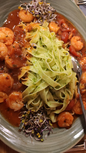 In summary, this restaurant exceeded my expectations in every way. From the inviting atmosphere and impressive architecture to the friendly staff, mouthwatering food, and the unforgettable chili shrimp pasta, it's a gem worth visiting...