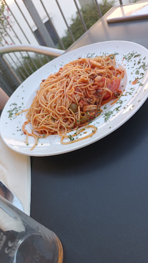Read moreVorneweg: ich war nicht begeistert. 1. Essen (Pzza vegetarisch & Salat)= beides kam gleichzeitig,okay, ich habe nicht explizit gesagt dass der Salat die Vorspeise sein soll. Pizza war gut, für meinen Geschmack etwas zu roh, noch ein paar Minuten Ofen hätten gepasst. Der extra bestellte Knoblauch war nicht auf der Pizza Getränke: es gibt kein Bier vom Faß, schade aber ist ja nicht unüblich. Dann halt Aperol Spritz: es fehlt die Orange, Röhrle oder Dekoblatt. Aber das kann ich verschmerzen Raumgestaltung: ist minimalistisch,aber durch die vielen Fenster auch nachvollziehbar. Die Rollos an den Fenstern müssen mal geputzt werden, klar gibt es auf so einem Gelände auch Fliegen...