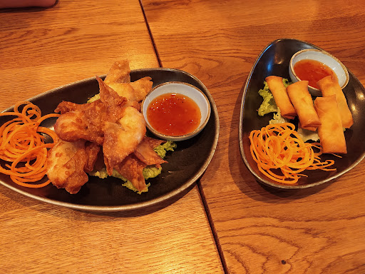 Read moreWhat a wonderful surprise! Great customer service, even when there was a small mistake it was handled with care. I had the pork egg rolls and a noodle salad with grilled chicken (the actual names will be highlighted in yellow in pictures). I also had an appetizer that was mistakenly given to me,which was also delicious but I don't know the name. It was chicken wrapped in wonton wrappers and fried. The jasmine tea did not only taste good, but was beautiful with little flowers floating in it. There has been real attention to detail in the food but also the decor. An overall wonderful experience...