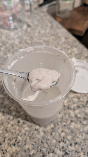 I've been there three times and the bubble tea was never particularly good. This time I got a taro milk tea and it barely tasted like taro. After I had drunk half of the cup I opened the lid and saw several huge big clumps of what I'm guessing is the taro Pulver. It can't even be mixed through stirring with a metal spoon let alone the paper straw so now I'm throwing it always since it doesn't taste very good and I keep getting clumps of the Pulver through the straw. All three times I was there I was really...