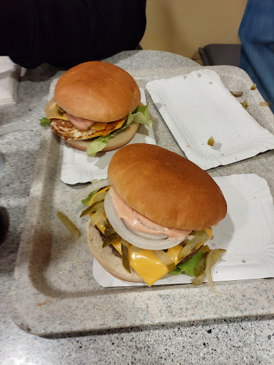 Als ich vorhin ankam hat der Angestellte Flaschen in den Kühlschrank geräumt. Ist dann hinter den Tresen und hat dann den Burger für einen Gast zubereitet. Ohne seine Hände zu waschen. Als dieser dann bedient war und er meinen Burger zubereitet hat, hat er während der Zeit, als das Fleisch brutzelte mit den Händen eine neue Ladung klein geschnittener Essiggurken befüllt. Portion für Portion ... Ohne Handschuhe oder eine Kelle/löffel zu benutzen. Danach durften seine Hände nun wohl sauber gewesen sein. Dass die Pommes kalt waren, weil sie die letzte Portion war, die über der Friteuse wartet fàllt da nicht mehr ins Gewicht. Solche Personen sollten keinen Kontakt zu Lebensmitteln haben. Auch im wahrsten Sinne des...