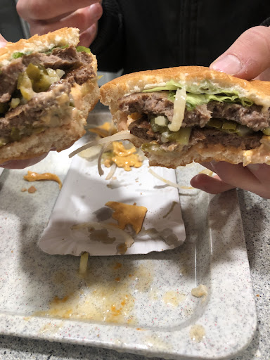 Als ich vorhin ankam hat der Angestellte Flaschen in den Kühlschrank geräumt. Ist dann hinter den Tresen und hat dann den Burger für einen Gast zubereitet. Ohne seine Hände zu waschen. Als dieser dann bedient war und er meinen Burger zubereitet hat, hat er während der Zeit, als das Fleisch brutzelte mit den Händen eine neue Ladung klein geschnittener Essiggurken befüllt. Portion für Portion ... Ohne Handschuhe oder eine Kelle/löffel zu benutzen. Danach durften seine Hände nun wohl sauber gewesen sein. Dass die Pommes kalt waren, weil sie die letzte Portion war, die über der Friteuse wartet fàllt da nicht mehr ins Gewicht. Solche Personen sollten keinen Kontakt zu Lebensmitteln haben. Auch im wahrsten Sinne des...