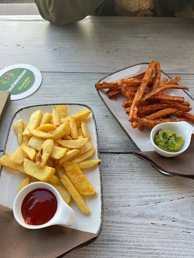 Now for the food. I had a Cheese burger. Just don’t . Don’t order the cheese burger. The bun is dry as a desert and rock solid. The burger patty is tasteless (no clue how they managed that). Way to much onion so the onion overwhelmed everything else. And it is expensive. Almost €14 for a really bad burger.