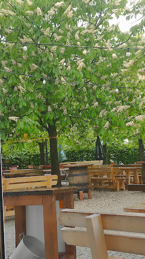 Sehr, sehr schöne Location, sowohl innen (sehr modern) als auch außen (rustikal). Terrasse mit Schirmen (bewirtet) und Biergarten unter großen Bäumen (Selbstbedienung). WC's sehr sauber. Kleiner Spielbereich für Kinder.