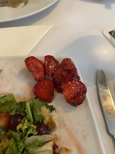 Read moreAufgrund der schönen Lage haben wir uns für dieses Lokal entschieden. Im Restaurant bekamen wir zu zweit eine einlaminierte, lieblose DinA4 Seite ausgehändigt - ohne Getränkekarte. Ich entschied mich für eine Weinschorle und den Tortelliniauflauf. Nach nur 5 Minuten wurden uns sowohl die Getränke als auch das Essen gebracht. Der Auflauf bestand aus lieblosen Fertigtortellini, in einer ungenießbaren Sauce und mit einem Käse überbacken, der noch nicht einmal verlaufen war. Entsprechend war das gesamte Gericht kalt. Als ich dies anmerkte und darum bat es von der Rechnung nehmen lassen zu dürfen, wurde mir angeboten ein anderes Gericht zu wählen. Ich entschied mich für den Burgschänkesalat. Dieser war leider auch schrecklich!! Die Erdbeeren waren schon verdorben (siehe Foto), der Salat bestand zu großen Teilen aus Strunk und das Dressing war so sauer und ungenießbar, als bestünde es lediglich aus reinem Essig. Wir waren mehr als enttäuscht. Nach dem Essen hätten wir das gerne dem Personal mitgeteilt. 20 Minuten saßen wir jedoch vor unseren „leeren“ Tellern, ohne das jemand kam. Nach 30 Minuten beschlossen wir zur Bar zu gehen um dort zu zahlen. Der Restaurantleiter frug uns garnicht erst, ob uns das Essen geschmeckt hätte und zu unserer größten Verwunderung gab es anstelle einer Entschuldigung noch einen Preisaufschlag von 2 Euro - da der Salat ja teurer gewesen sei als das Nudelgericht. Die Weißweinschorle hatte übrigens den stolzen Preis von 5,80 Euro - hätten wir das gewusst, hätten wir sicherlich ein anderes Getränk gewählt. Wir würden das Restaurant auf keinen Fall weiterempfehlen und nicht...