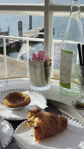 What can one say about Bavaria and the surrounding lakes and culture? Only that it is breathtakingly beautiful and unique. Aran, situated on the edge of the Tegernsee is no exception to this standard, and they have created a tranquil but elegant escape. The restaurant caters for groups and small meetings, and also for the single who wants to sit for hours and take in the incredibly blue waters and landscape of the lake and local area. Boats and sail boats glide slowly across the water barely disturbing the water foul of the region while you contemplate how you could possibly invest in an apartment in the area to make the most of this Lake life. But back to the goods (if we have to), the coffee is good, the food and fresh cakes are unquestionably worth every cent. The service is friendly and provided over the counter. Which brings me to the problem with Aran. The only two, but very important, problems. One must queue and be served one at a time to get your meal and drinks order in (um buy another cash register machine?) and once your coffee is finished you must then queue once again to just get a coffee. A very frustrating System that could be easily repaired. Very easily. 20 minutes standing in a queue whilst your guests or partners wait is not worth the slightly above average coffee. But they have that view... so blood boiling soon turns to just simmering red blood cells.