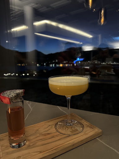 Read moreSehr angenehme kleine Bar. Die Getränke und Cocktail Auswahl überzeugen. Ebenfalls die Auswahl an alkoholfreien Cocktails ist sehr abwechslungsreich. Das Service-Personal ist super freundlich, nicht aufdringlich und für den einen oder anderen spaß zu haben. Was das Ambiente angeht, ist es für mich persönlich etwas zu kühl. Viele grau, weiß und blau töne, rechte Seite Stehtische mit Barhockern und auf der linken eine durchgehende bank. Also keine richtigen lounge Ecken. Aussicht ist trotzdem schön und ich bin der Meinung das die Dachterrasse im Sommer noch mehr überzeugen kann. Definitiv einen...