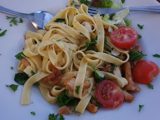 We came here because there was a sign outside saying fresh Pfifferlinge (chanterelles). We were told there are only two dishes to choose from: noodles in an herb sauce with chanterelles or bratkartoffeln with chanterelles. I chose the noodles and chanterelles in an herb sauce. We ordered and waited for over an hour for our food. There were only 7 other tables! Unbelievably slow and bad service. I could driven the hour home and have cooked faster and better. It was cold outside after waiting so long for our meal so I asked for a blanket. After 10 minutes they said they can't find any blankets that maybe they took them all to the laundromat. Our meal finally came and the dish had at most 6 whole chanterelles with noodles and no herb sauce like they had said. There was no flavor and just some pieces of parsley on it and so I asked if they could put any sauce on it. The waiter offered a cream sauce and then when he brought it back, they didn't give me a fork and I had to sit there with the new dish but no way to eat it for 10 minutes. When I finally tasted it, it only tasted like pure pepper. Then he offered to get me something else. At this point my husband had already finished his meal which he didn't care for either when the waiter brought out a few boiled chanterelles next to soft flavorless "bratkartoffel" (they seemed and tasted boiled not fried). He said he specifically told the chef to not add any sauce or seasoning (that is NOT what I asked for). When I explained to him that that hadn't been the problem with the other dishes, he became very rude. Even a coworker noticed and tried to pull him away from the table. Other guests noticed too and said they wouldn't pay for the dish if they were us. He finally came back and had taken the dish off the bill. We ended up going to Burger King and got a much better meal....