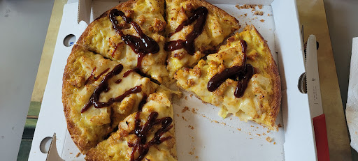 This is a busy little pizza delivery which does deliveries, so don't hang out here if you can avoid it as there is no seating and all you can do is awkwardly watch as the guys run around putting pizzas in the oven. The pizzas were more deep pan variety and on the small size but did the trick as the...