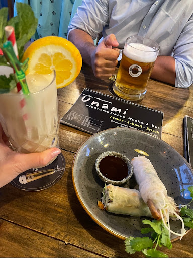 Read moreUnami in Teltow überzeugt mit einer sehr angenehmen Atmosphäre und modernem Ambiente. Der Service ist freundlich, aufmerksam und geht flexibel auf Wünsche ein. Die Speisekarte bietet eine ausgewogene Mischung aus klassischen vietnamesischen Gerichten wie Pho, Sommerrollen oder Bun und einigen moderneren Varianten. Besonders positiv ist die große Auswahl an vegetarischen und veganen Optionen, ohne dass Fleischgerichte zu kurz kommen. Die Qualität des Essens ist durchweg hoch: frische Zutaten, aromatische Zubereitung und eine ansprechende Präsentation. Die Pho ist kräftig und ausgewogen, Sommerrollen sind leicht und knackig, und die Entengerichte zeichnen sich durch knusprige Haut und zartes Fleisch aus. Auch die Currys sind cremig, mild gewürzt und mit viel Gemüse versehen. Dazu passen hausgemachte Limonaden, vietnamesischer Eiskaffee oder Jasmintee, die für Abwechslung sorgen. Die Preise bewegen sich im fairen Rahmen, mit Hauptgerichten um die 10 bis 14 Euro und Vorspeisen um die 5 bis 6 Euro. Sauberkeit und gepflegte Einrichtung tragen zum positiven Gesamteindruck bei. Insgesamt ist das Unami ein empfehlenswertes Restaurant für Liebhaber vietnamesischer Küche, das sich sowohl für ein entspanntes Abendessen als auch für ein schnelles Mittagessen eignet....